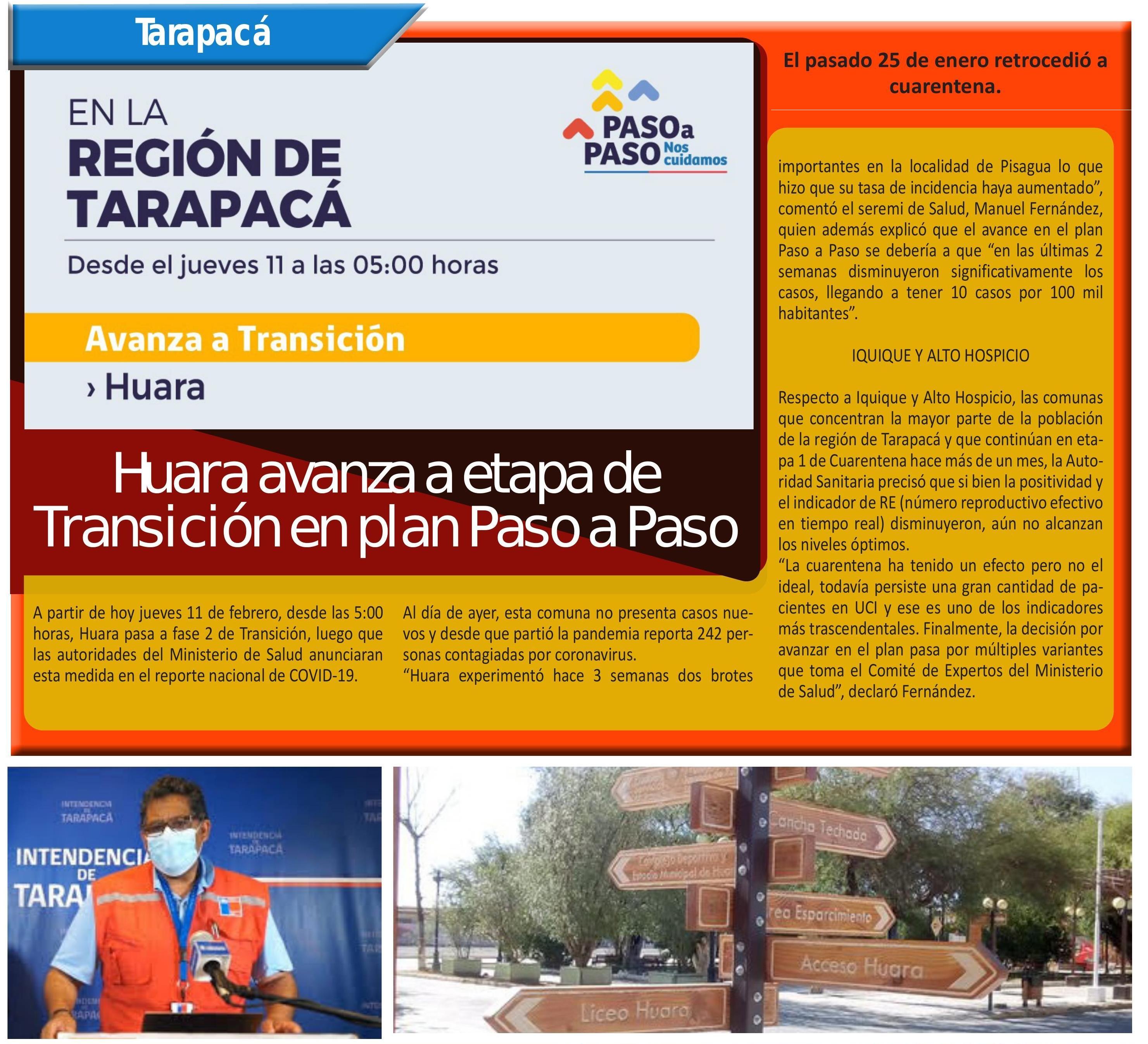 El ministerio de salud (minsal) anunció, durante la jornada de este lunes, nuevas modificaciones a las cuarentenas del plan paso a paso en el marco de la pandemia. Atención hoy dimos a conocer junto al @ministeriosalud la iniciativa #pasoapasolaboral, hoja de ruta que establece medidas concretas para que los lugares de trabajo resguarden siempre la vida, seguridad y salud de los trabajadores. Mientras que los avances en el plan comenzarán a regir desde este lunes 1 de marzo, a las 05:00 horas. Revisa los cambios en detalle acá Lota, coronel y arauco salen de cuarentena esta semana.